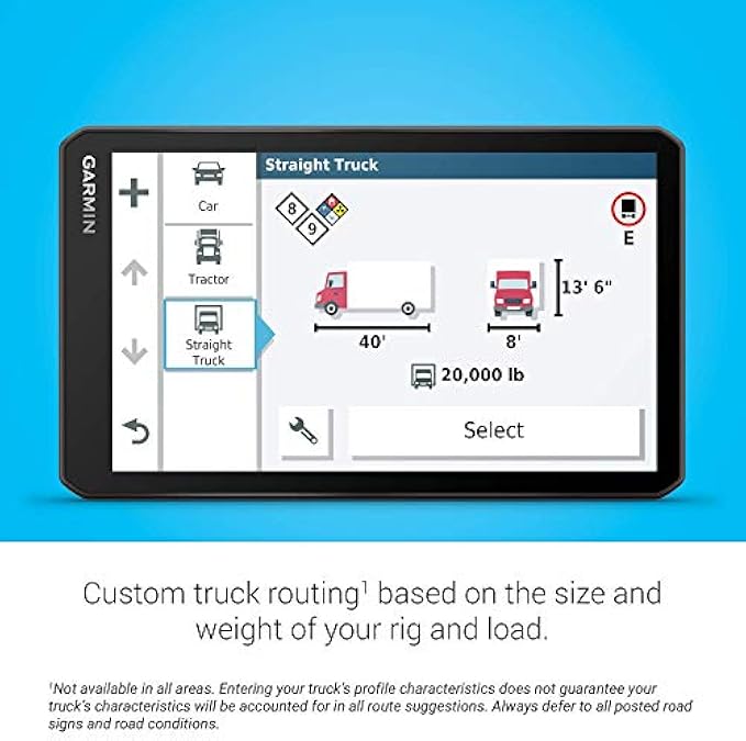 Get custom truck routing (Not available in all areas) based on the size and weight of your truck, and see alerts for upcoming bridge heights, sharp curves and more