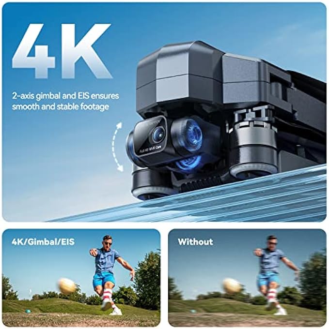 • 【?? ?????? ???? ?????? ??? ???】: This 4K drone captures video and photo at up to 3840x2160 resolution. With 2-axis gimbal and Electric Image Stabilization technology, video recording is more stable. 5x digital zoom and 80 degrees adjustable lens ensure more flexibal to switch between lenses of different distances and directions.
