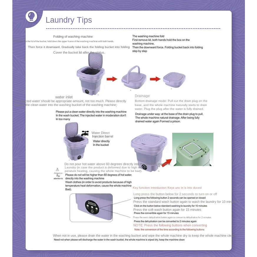 Best Feature(s):collapsible & powerful Performance:not bad can wash small items Useful for few small items that need immediate wash without using big washing machine or for small items that need separate wash like whites or sports singlet or shorts or lingerie etc The spinning power is surprisingly strong and too much water or overloading with too many items can result in splash of water out. Recommend 35% item rest water and detergent to see it toss and turn nicely in the tub.