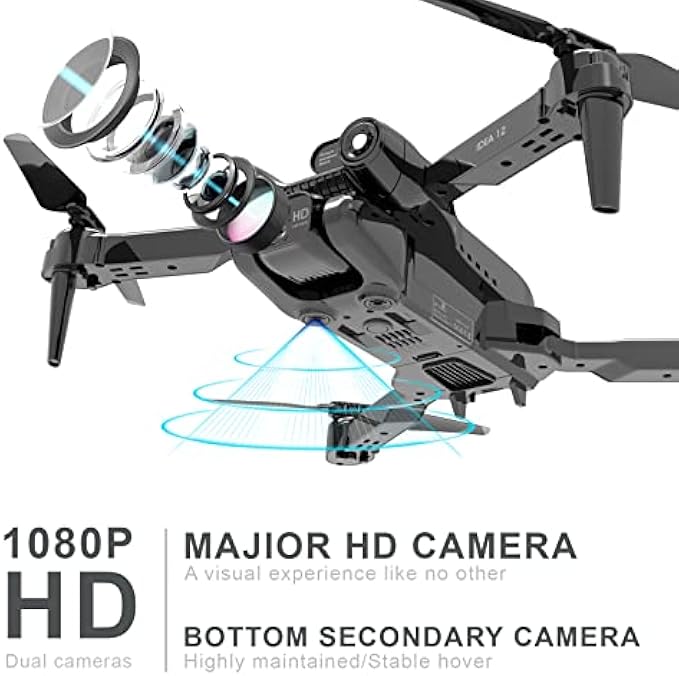 IDEA12 Mini Drones with Camera 1080P, Foldable FPV RC Drone Quadcopter for Adults and Beginners with 360° Active Obstacle Avoidance, 2 Cameras, Altitude Hold, 360° Flip, Headless Mode, 2 Batteries, He