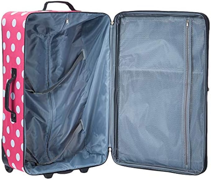 Rockland Polka Softside Upright Luggage Set, Expandable, Lightweight, Pink Dots, 4-Piece (14/19/24/28)