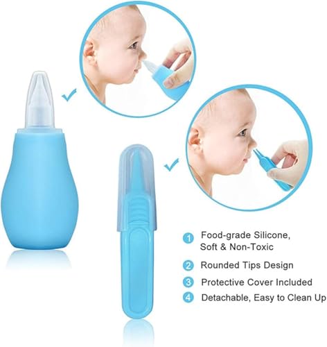 14 in 1 Baby Grooming Kit: The package comes with the baby grooming kit, including baby nail file, Newborn hair brush, Babies comb, finger toothbrush, tweezer, nasal aspirator, baby scissors, medicine dropper,portable blue EVA bag, and measuring spoons(ml).This 14 in 1 grooming kit can be used for our newborn baby's daily needs.