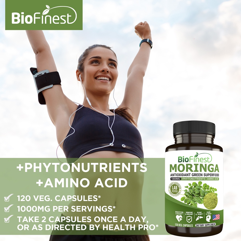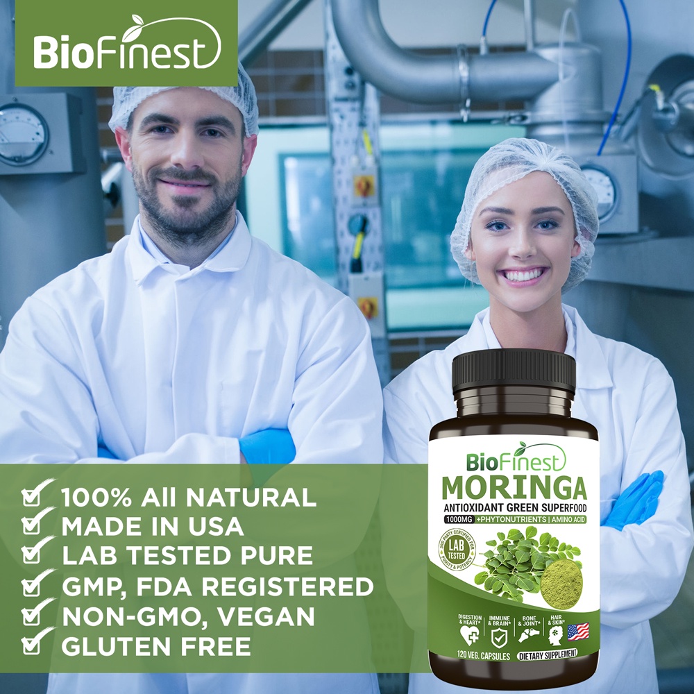 Biofinest Moringa Leaf 1000mg Supplement - Antioxidant Superfood Powder- Energy Skin Blood Sugar Immune (120 capsules)