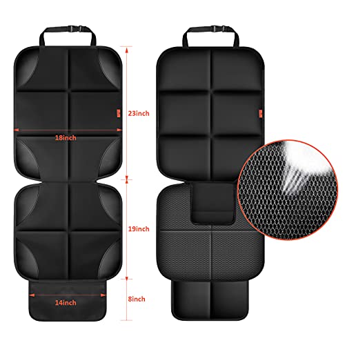 ANTI-SLIP DESIGN & ADJUST STRAPS:Non-skid material on top and bottom to prevent car seat from shifting,Securely fasten them to achieve a perfect fit. Forget about seat protectors sliding off the seat,The car seat mat has adjustable safety straps that will tie the cover securely to the headrest. Securely fasten them to achieve a perfect fit