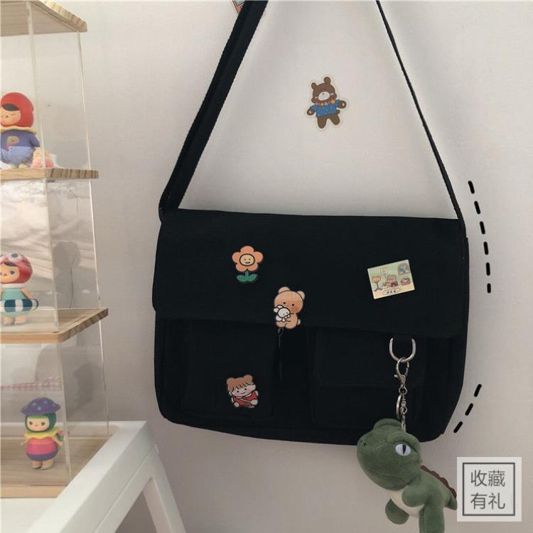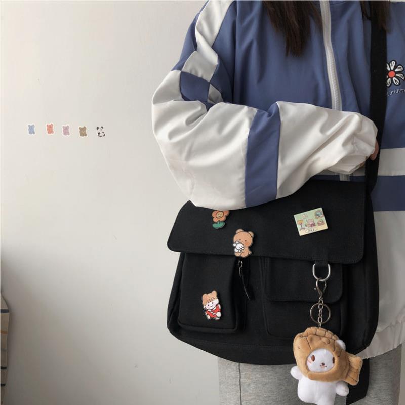 Japanese Harajuku Girl Solid Color Soft Girl Shoulder Bag Korean-StyleinsSimple Messenger Bag (Without pendants))