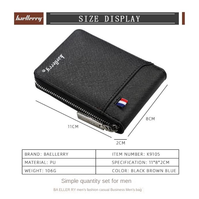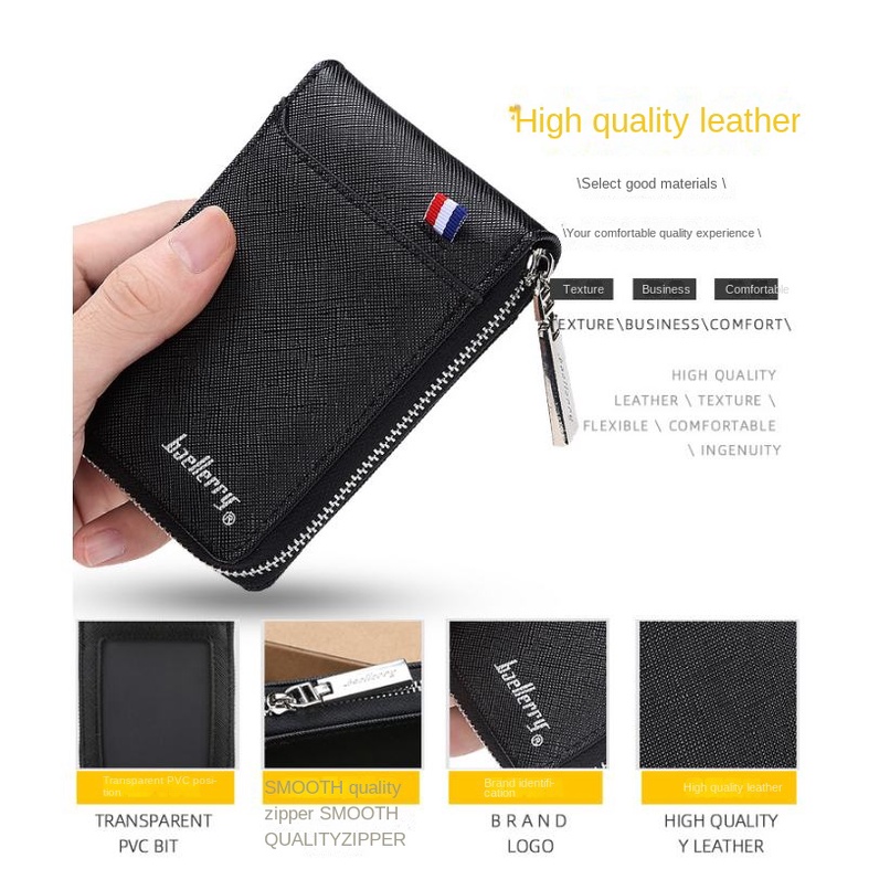 Men New Style Leather Zipper Short Wallet Multifunctional Coin Purse Multi-card ID Bag Card Holder