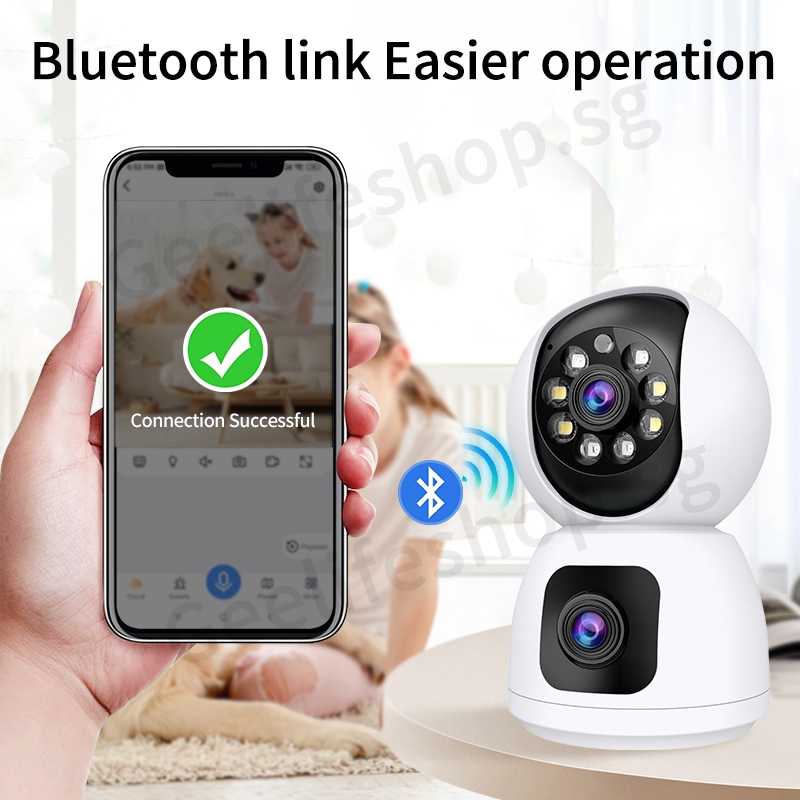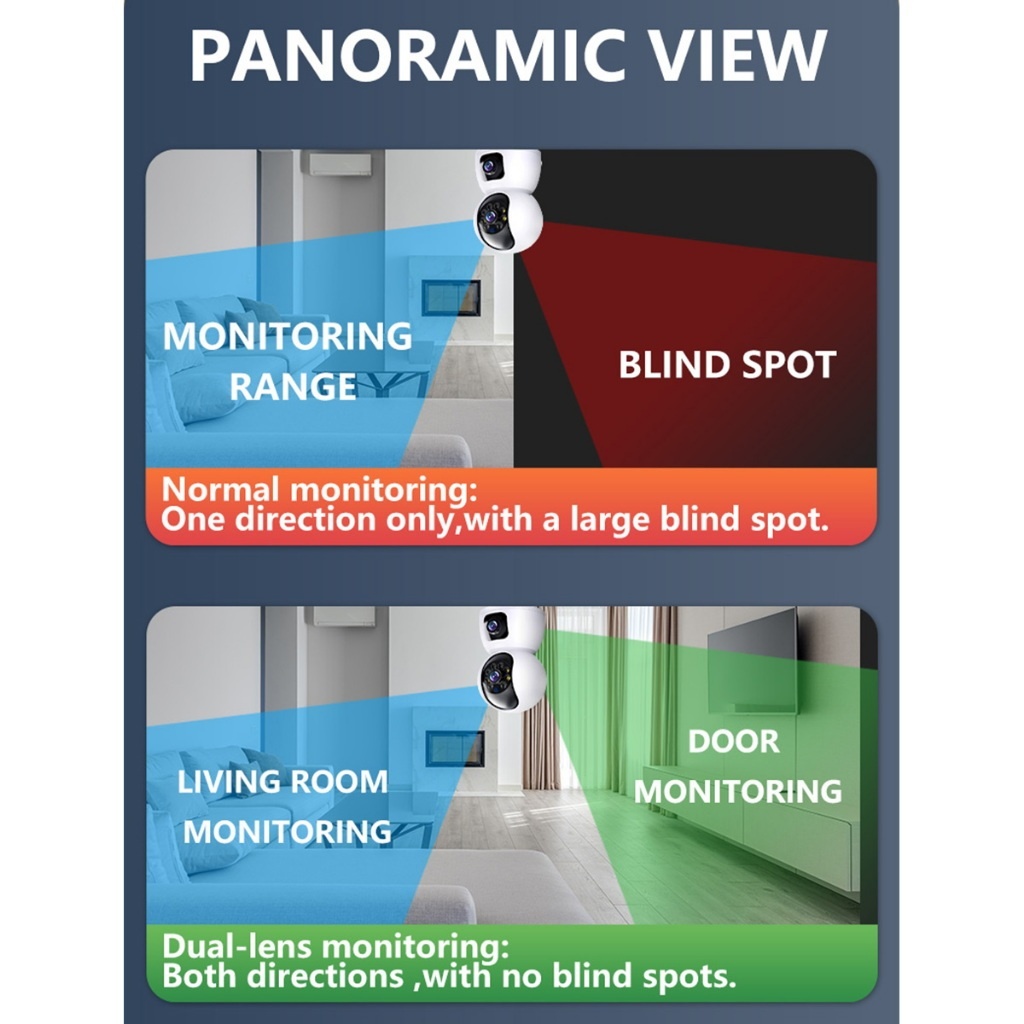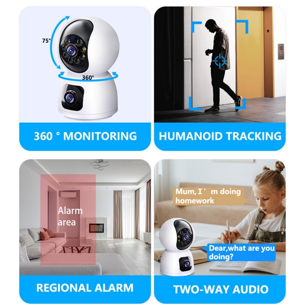 Dual Lens -dual screens CCTV home security camera Indoor 3MP 2K Two Way Talking Camera Phone Control Built-in Microphone