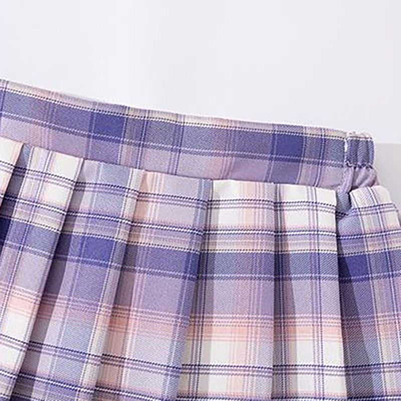 Girls Suit Cartoon Kurumi 100% Cotton T-Shirt and JK Dress Checked Skirt Free Bow Tie