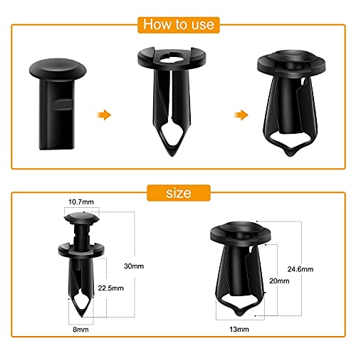 The clips are widely used for radiator yoke trim panel door trim door panel bumper car fender flare side skirt grille wheel well air intake engine cover mud flap and splash guard shield retainers rivet clips replacement