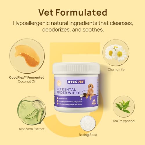 HICC PET Teeth Cleaning Wipes for Dogs & Cats, Remove Bad Breath by Removing Plaque and Tartar Buildup No-Rinse Dog Finger Toothbrush, Disposable Gentle Cleaning & Gum Care Pet Wipes, 50 Counts