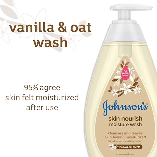 20.3-fluid ounces of Johnson's Skin Nourish Moisture Baby Body Wash enriched with vanilla & oat scents to gently cleanse baby's delicate skin and hair, leaving your little one's skin feeling touchably soft and smooth