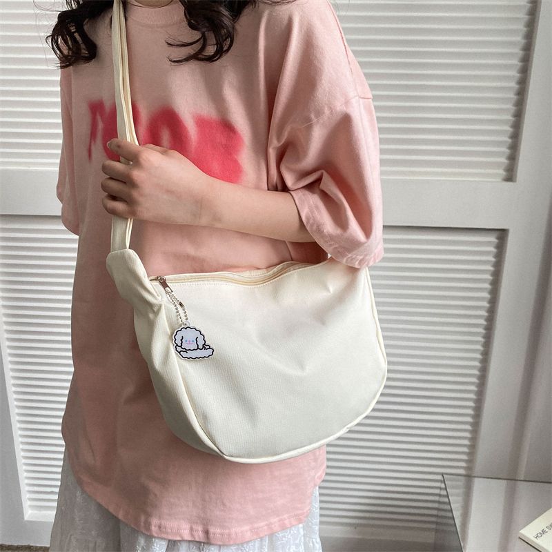 Large-capacity Canvas Shoulder Bag Women 2023 Spring Summer New Style Solid Color Simple Fashion Casual Bag Messenger Bag Trendy