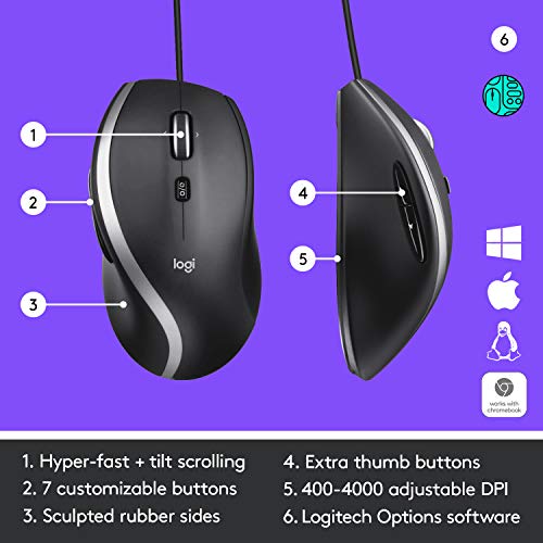 Logitech M500s Advanced Corded Mouse with Advanced Hyper-Fast Scrolling & Tilt, Customizable Buttons, High Precision Tracking with DPI Switch, USB Plug & Play
