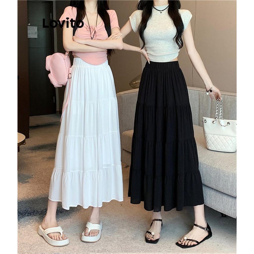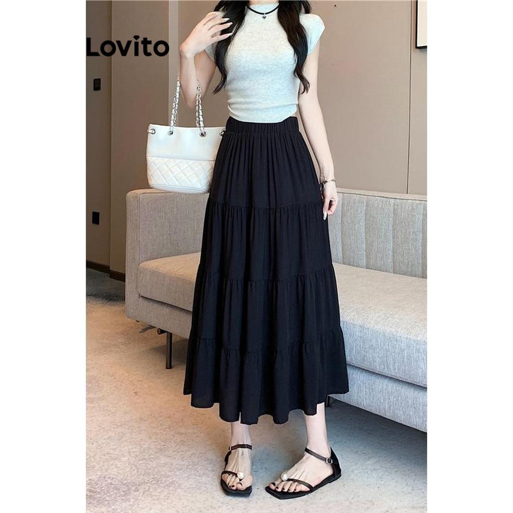 Lovito Casual Plain Structure Line Draped Skirts for Women LNE59445