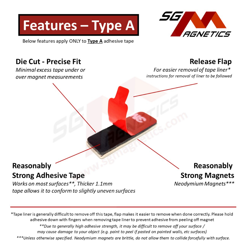 Magnets with Double Sided Tape - Die Cut Magnetic 3M 5952 Adhesive Strong Sticky Thin Disc Round Rectangular Rectangle