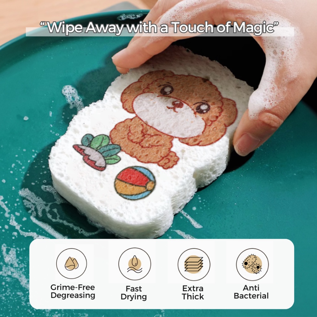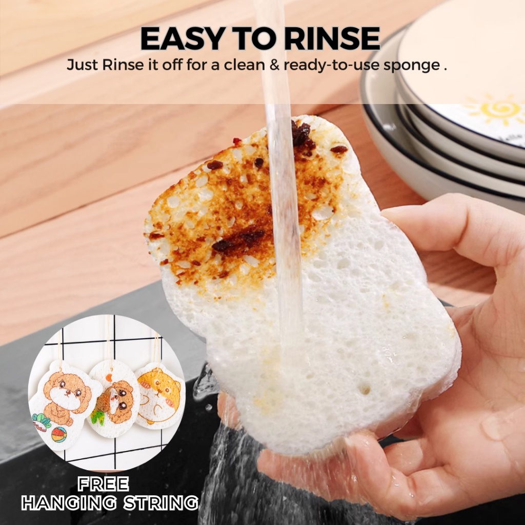 mixshop Magic Wood Pulp Dishwashing Cleaning Sponge [FREE HANGING STRING] [SG READY STOCK]