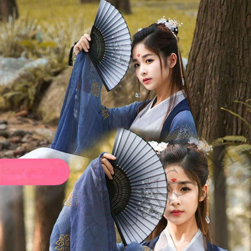 Ready stock Chinese Style Vintage Bamboo Folding Hand Held Flower Fan Chinese Dance Party Pocket