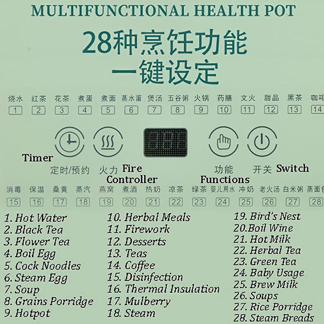【READY STOCK】Electric Health pot Teapot 1.8L Multi-function Electric Kettle Thick Glass Kettle Thermos 3-pin Plug 養生壺 迷你