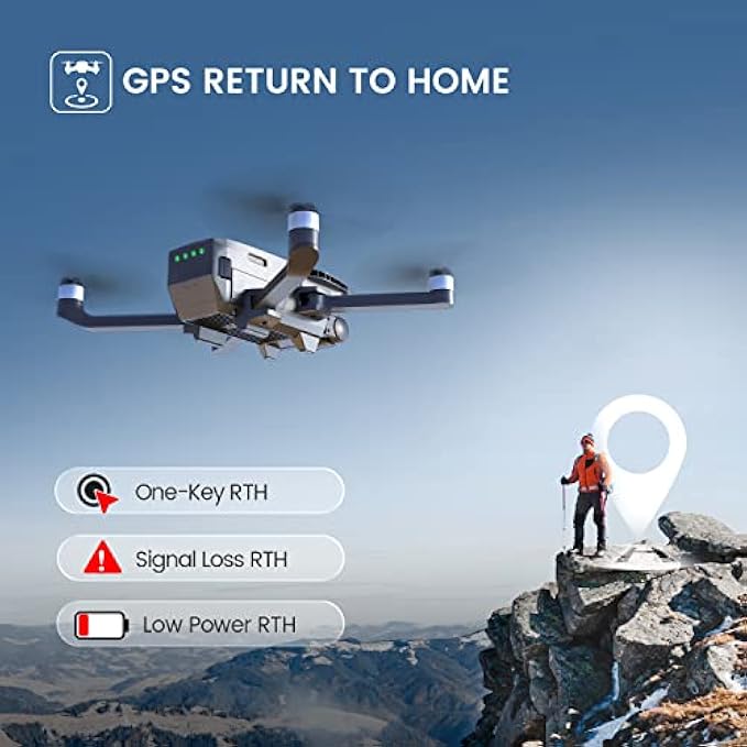 • Never Losing the Drone: The Emergency Stop, Smart Return to Home, GPS module and One Key Return can prevent HS720G from losing to a great extent. Don’t hesitate to take it home.