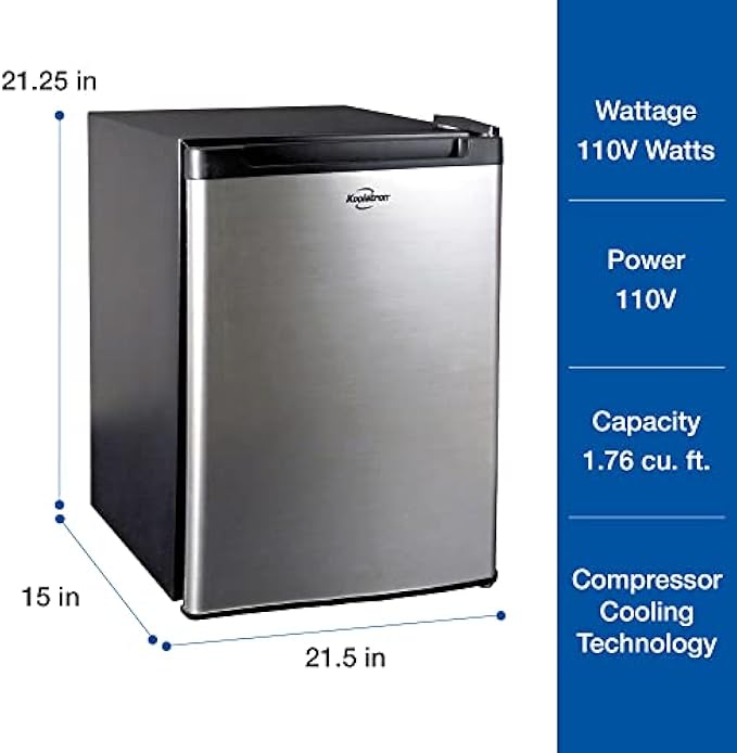 Koolatron Super Kool 45 Portable Fridge 1.76 Cu Ft (50L) Capacity, 12V DC / 110V AC, Stainless Steel, Thermoelectric Cooler, Heat Pipe Compact Fridge for Long-Haul Trucker, Car, Boat, Dorm, Office, RV