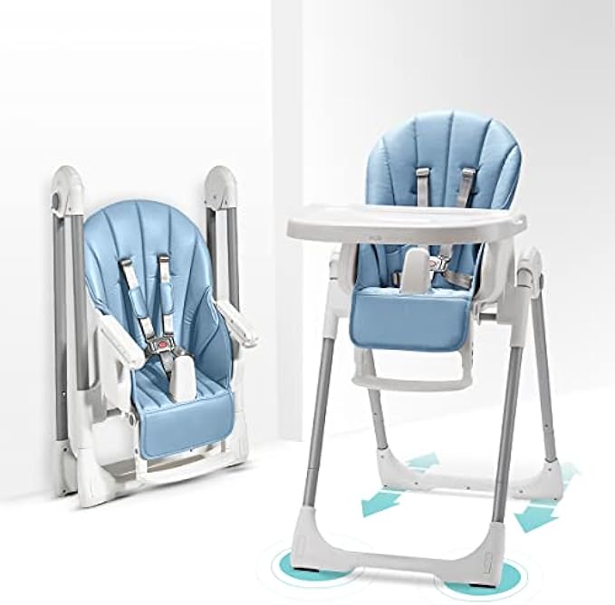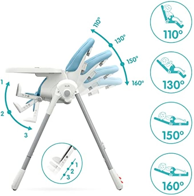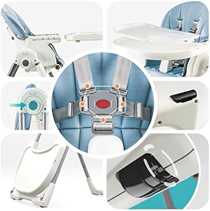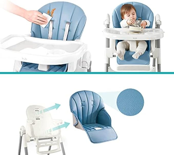 KÜB 3-in-1 Foldable Baby High Chair (Blue) | Multifunctional Infant HighChair for Babies & Toddlers | Removable Seat & Tray for Easy Clean | 7 Height & 4 Recline Adjustable | 2 Locking Wheels | Safe