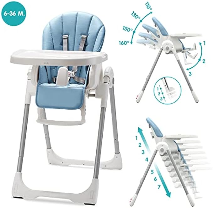 • ? Adjustable: 7 height positions, 4 tilt positions, 3 adjustable footrest positions, 3 telescopic positions and a removable and adaptable tray in 3 positions to feed babies and children, guaranteeing comfort and functionality. 2 locking wheels for easy moving.