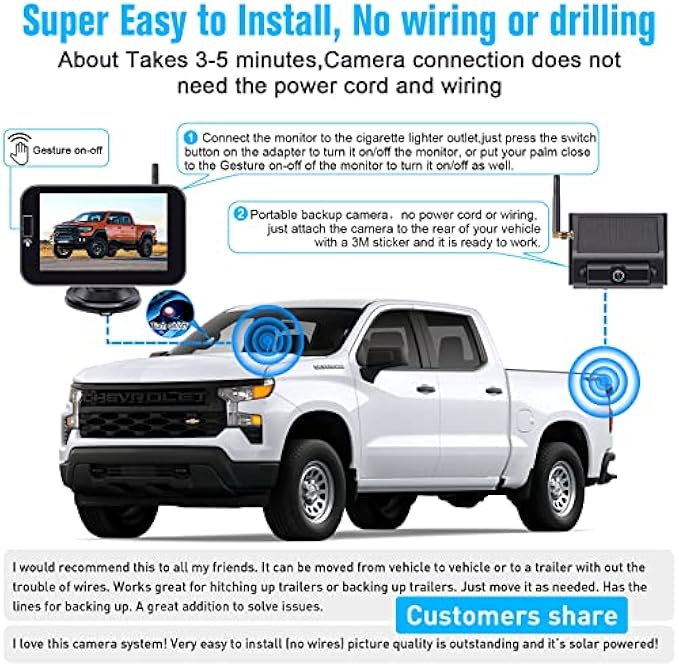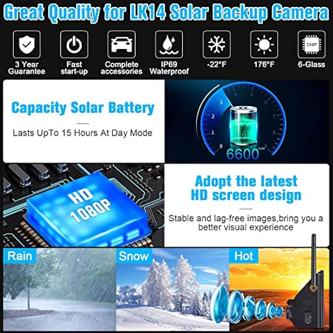 • 【Product Warranty】 ►Solar wireless backup camera has a 3 year warranty and life-time tech support,Please contact us for help first to solve it if you have any issues with using this product.