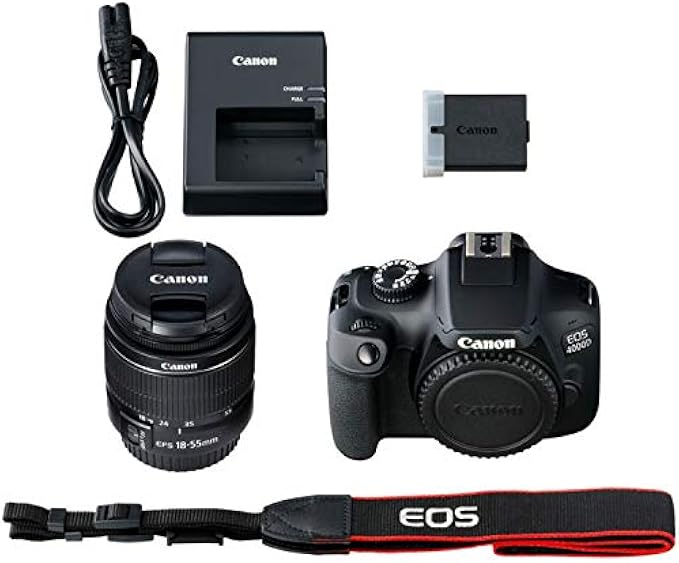 • Canon EOS 4000D DSLR Camera(Intertiol Version)- 18.0MP APS-C CMOS Sensor,DIGIC 4+ Image Processor, 6.8 cm (2.7 inch) TFT LCD, approx. 230 K dots, Full HD 1080p Video Recording at 29.97 fps ,9 Point Auto Focus,Dual,Up to 3 fps Shooting and ISO 12800, Scene Intelligent Auto, Instantly transfer photos and movies to your smart device, for easy sharing on social media or cloud backup, and shoot remotely with Wi-Fi and the Canon Connect app,1 Year Limited Seller Supplied