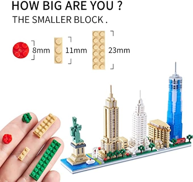• Good-quality mini building blocks: YaJie New York Skyline model building block set is made of original ABS material, durable plastic set. The micro blocks are as small as 4 mm x 5 mm, and the smaller the block, the better.Our products are in accordance with the manual steps to building blocks in different packages, and with number, the customer is more easy to build.