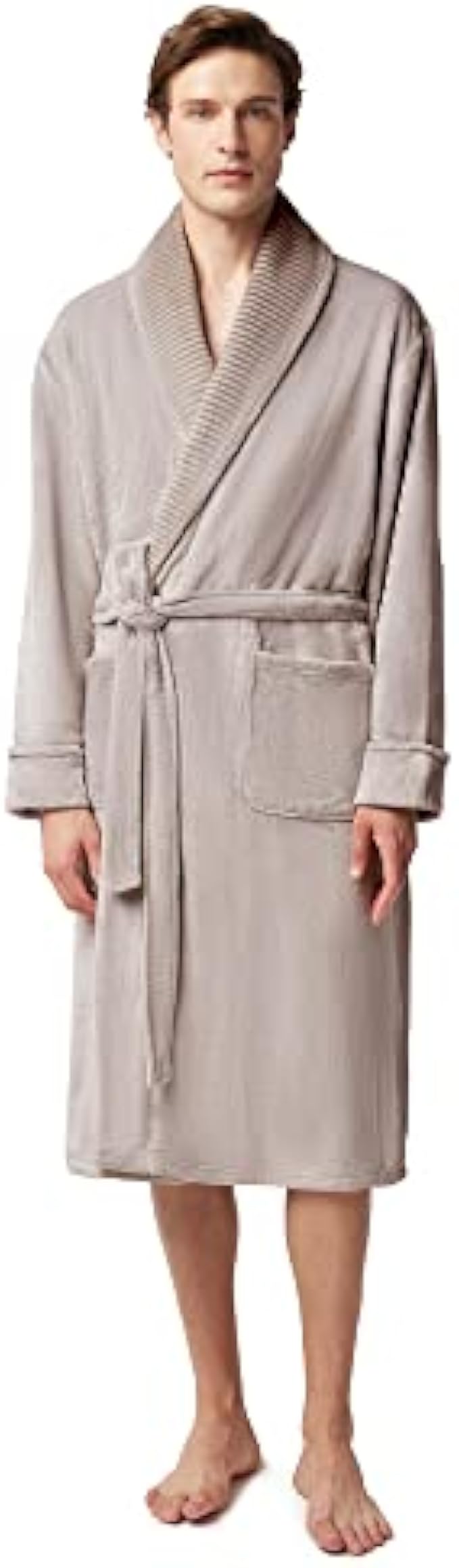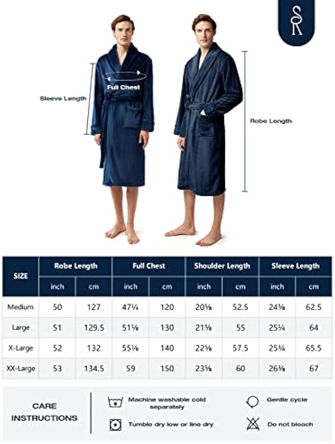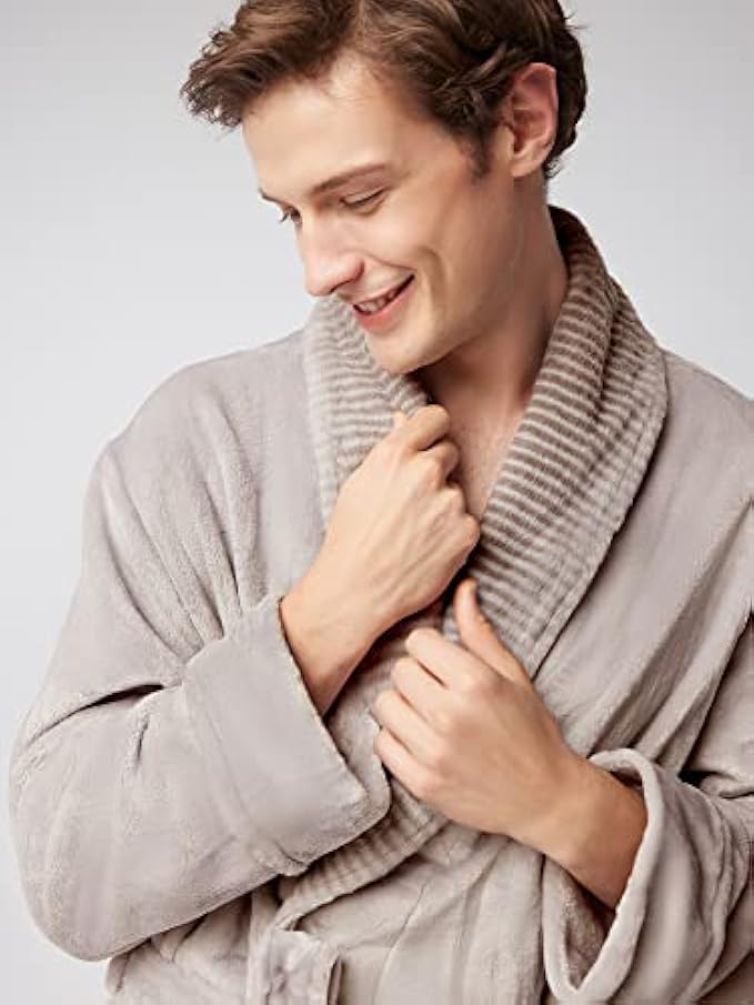 <li class="a-spacing-mini"><span class="a-list-item"> Material: Made of high-end fleece fabric, soft and skin-friendly, feels fine and not easy to pilling and shed hair </span></li> <li class="a-spacing-mini"><span class="a-list-item"> Tie closure </span></li> <li class="a-spacing-mini"><span class="a-list-item"> Machine Wash </span></li> <li class="a-spacing-mini"><span class="a-list-item"> Warm: The Robe inner layer retaining plush locks the temperature to keep you warm no matter how low the temperature drops. </span></li> <li class="a-spacing-mini"><span class="a-list-item"> Easy Care: Machine wash cold with like colors. Do not bleach. Tumble dry low. Do not dry clean. </span></li> <li class="a-spacing-mini"><span class="a-list-item"> Inner and Outer Ties: The bathrobe features an inside tie closure to Prevent the bathrobe from slipping off or opening matter how you twist, turn, or bend, and an adjustable outer belt tie for a perfect fit. </span></li> <li class="a-spacing-mini"><span class="a-list-item"> Large Pockets: This plush robe features two large pockets that are big enough for your phone and warm enough for your hands. </span></li> <li class="a-spacing-mini"><span class="a-list-item"> Gift: Perfect present for Christmas, Father's Day, or his birthday. Our robe comes is neatly packaged making it easy to wrap for a nice gift presentation. </span></li>