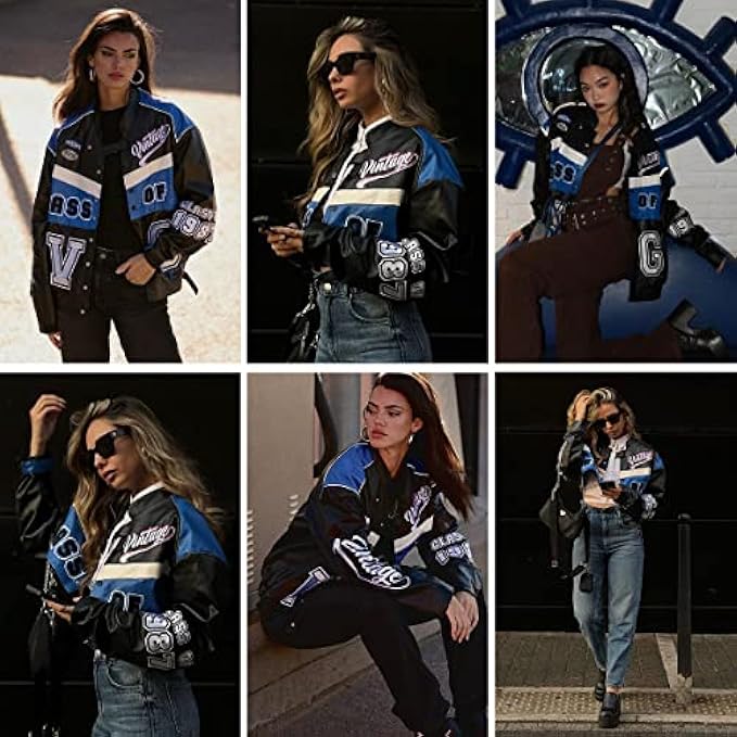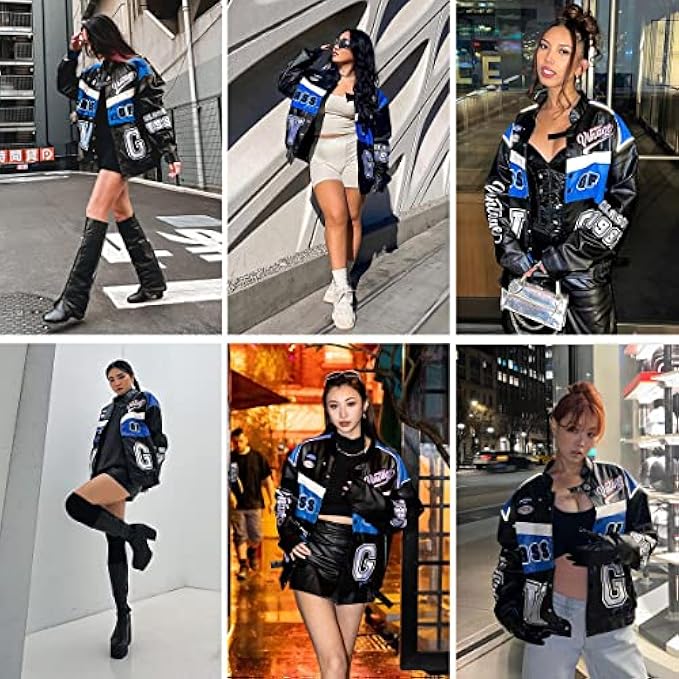 <li class="a-spacing-mini"><span class="a-list-item"> PU+Polyester </span></li> <li class="a-spacing-mini"><span class="a-list-item"> Button closure </span></li> <li class="a-spacing-mini"><span class="a-list-item"> Machine Wash </span></li> <li class="a-spacing-mini"><span class="a-list-item"> Features: Patchwork long sleeve racing jackets use high quality of polyester, reat looking, durable for casual wear. If you like racing style, don't miss this jacket! </span></li> <li class="a-spacing-mini"><span class="a-list-item"> Jacket Designed : Two beautifully designed lower roomy patch pockets can provide enough capacity for you to get the job done, colorblock, patchwork, letter graphic, finely crafted embroidery patterns, classic and stylish, oversized, fashion, zip closure, utility jackets, bomber jackets, leather jackets, varsity jackets, streetwear jacket, sports jackets, there's something for you, will be good to suitable for spring autumn and winter. </span></li> <li class="a-spacing-mini"><span class="a-list-item"> Classic Fit: This jacket is zippered and has a detachable hem that can be adjusted to suit your outfit, it easy to match t-shirt or blouse tops, you can pair this basic tops under a jacket, with jeans, leggings or a skirt in spring summer, fall and winter. An essential for every fashion women or girl! </span></li> <li class="a-spacing-mini"><span class="a-list-item"> Occasions: The oversized retro streetwear is very suitable for music party, school, band performance, bar, leisure, indoor and outdoor wearing. Please pay attention to the size when purchasing, you can contact our store, we will be processed within 24 hours of the working day. </span></li> <li class="a-spacing-mini"><span class="a-list-item"> Satisfaction Guarantee: Your order and message will be processed within 24 hours of the working day.If you have any problems, please contact us. </span></li>