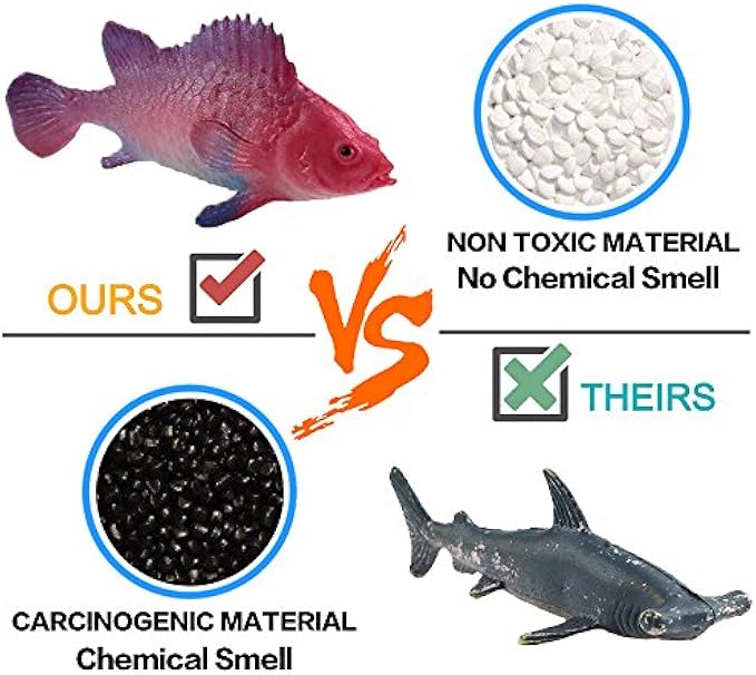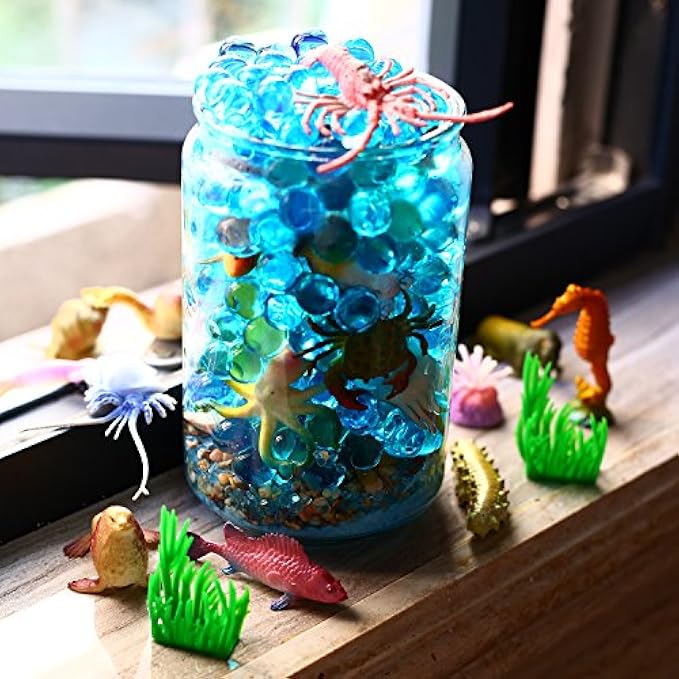 Ocean animal toy, 46 Pack sea animal( no duplicated!!!) + 6 grass, beautifully detailed and made of 100% safety highest quality plastic material! Sea animal toy, approximately 2 inch, creature including Octopus,hippocampus, seahorse, jellyfish, turtle,clown fish, crab,shark Otter and etc Party favors, realistically detailed sea animal figurines inspire imaginative play and curiosity as learning toy, and makes the perfect novelty gift for kids toddler boy girl,ages 3 year and up! Cake cupcake topper, Perfect to complete party decorations or used for school education project, Goodie Bag Prizes giveaway, sensory water bin or birthday, Valentines Day gift, Easter Eggs Stuffers, Pinatas Filler Bath toy, kids love dropping ocean animal in the pool, water table, sand box, beach or bath tub and collecting them. Great for kid child toddler to enjoy bathtub time!