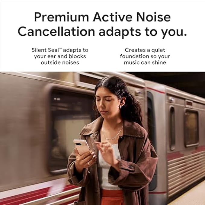 • Pixel Buds Pro use Active Noise Cancellation with Silent Seal to adapt to your ear and help block outside sounds, creating a quiet foundation so your music can shine; and now they’re even better, with new features and colors