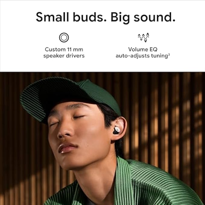 • Pixel Buds Pro have custom 11 mm speaker drivers and Volume EQ to sound amazing at any volume[3]; the app tells you how loud you’ve been listening to music over time and offers ways to adjust to help you maintain your hearing wellness