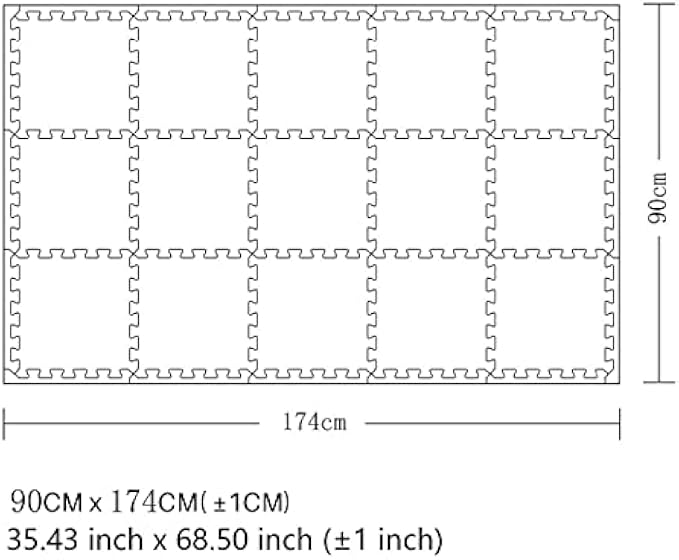 • PLAY MAT COVER AREA: 90 CM x 174 CM( ±1CM) / (35.43 inch x 68.50 inch (±1 inch))