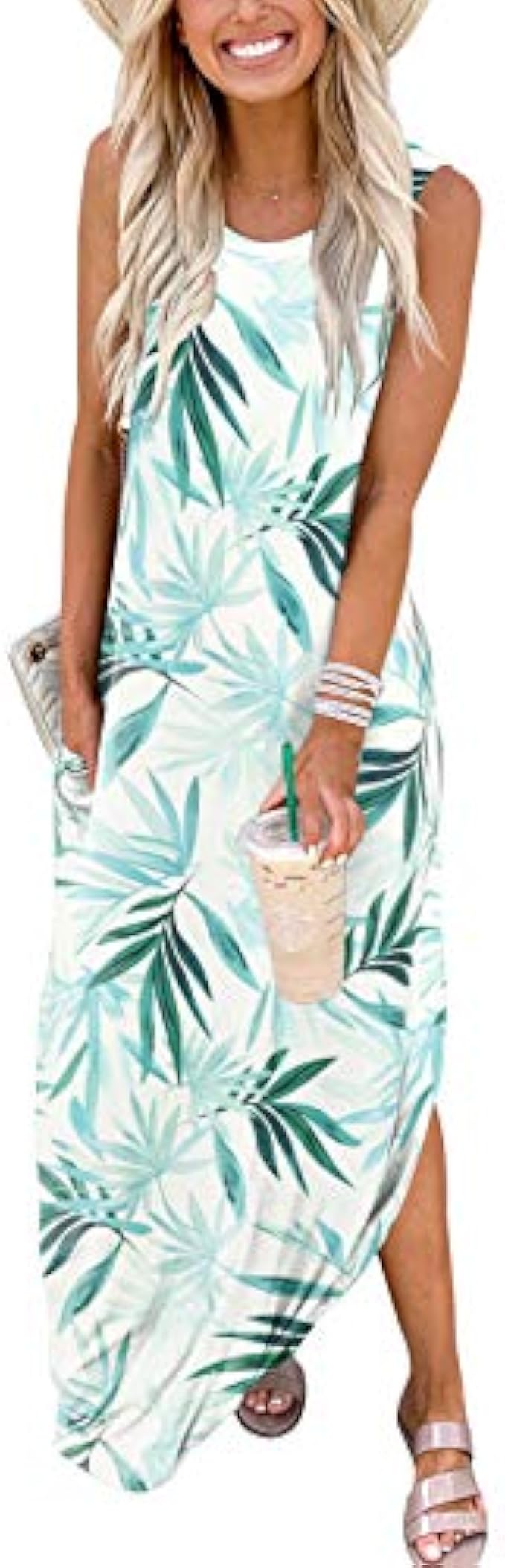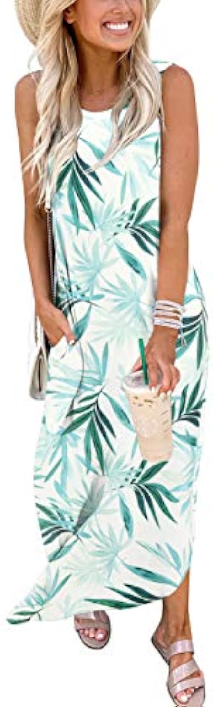 ANRABESS Women's Casual Loose Sundress Long Dress Sleeveless Split Maxi Dresses Summer Beach Dress with Pockets