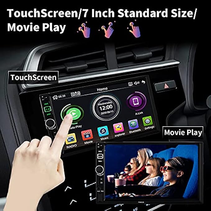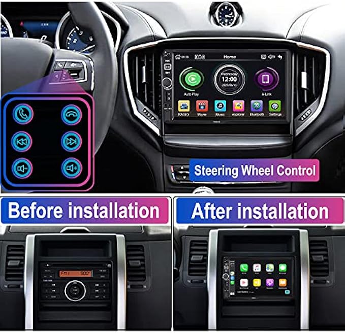 • 【7-Inch Double Din Touchscreen Car Stereo】7-inch capacitive screen designed. Universal double din standard universal size 7.4 inch×4.6 inch×2.6 inch to fit most vehicles. Our apple carplay double din stereo is equipped with a 7-inch HD capacitive touch screen and it makes more sensitive and accurate.