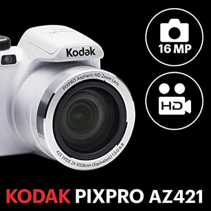 KODAK PIXPRO Astro Zoom AZ421-WH 16MP Digital Camera with 42X Optical Zoom and 3" LCD Screen (White)