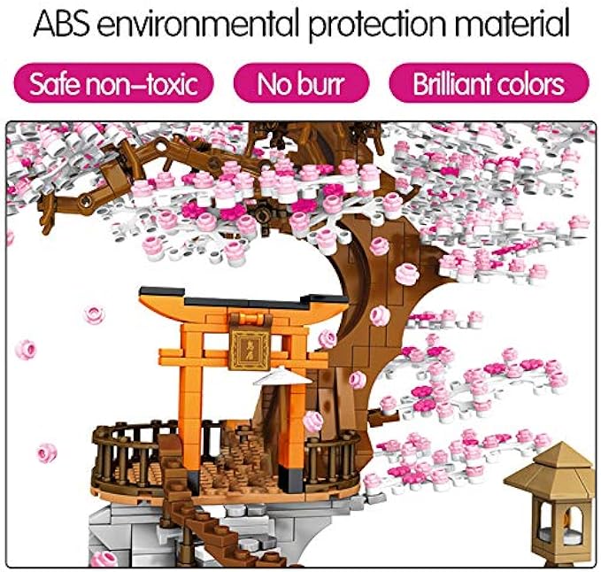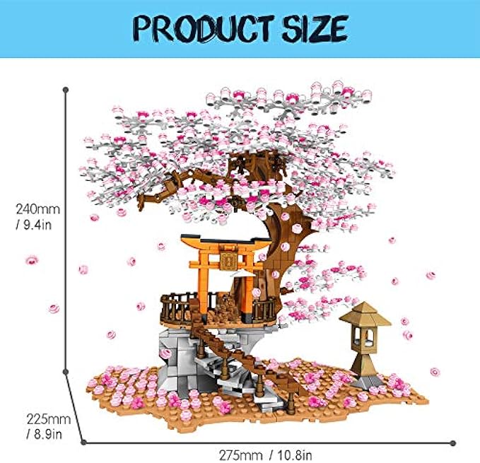 NEWRICE Sakura Tree House Lights Building Kit,City Architecture Inari Shrine Building Blocks Sets,for Adults,or Aged 12+ Boys Girls (1103 Pieces)