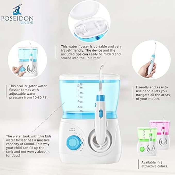 • AVAILABLE IN 3 COLORS- This water flosser for kids comes in 3 attractive colors- blue, green, and pink. Allow your child to express their preference with their favorite color. They can also further design it by attaching stickers to it!