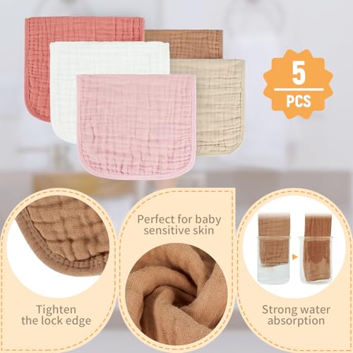 Excellent Absorbent: Featuring 6 layers of absorbent muslin and fluffy structure design, our burping cloths for babies provide maximum absorption with tendor touch, works well to protect your teething baby from all dribble and spit ups soaking their clothes.