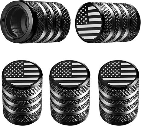 Tire Valve Stem Cap Cover - (5 Pack) Tire Air Cap Metal with Plastic Liner Corrosion Resistant Leak-Proof American Flag for Car Truck Motorcycle Bike Black