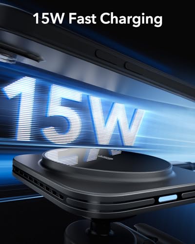 ESR HaloLock Magnetic Wireless Car Charger, Fast Charging, Compatible with MagSafe Car Charger, Air Vent Mount Compatible with Caseless iPhone 13/12 Series Phones and Magnetic Cases, Black