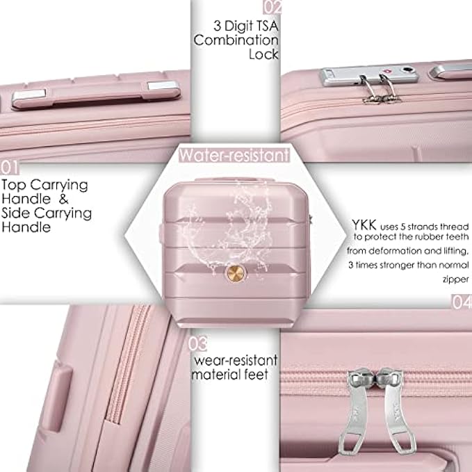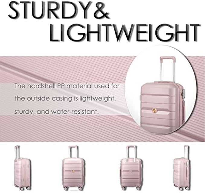 High-Quality 4-Piece Luggage Sets: These suitcase sets are made of PP Material that is extremely resilient to cracking or breaking. They feature a textured finish to prevent scratches, keeping lightweight luggage sets beautiful after trip.