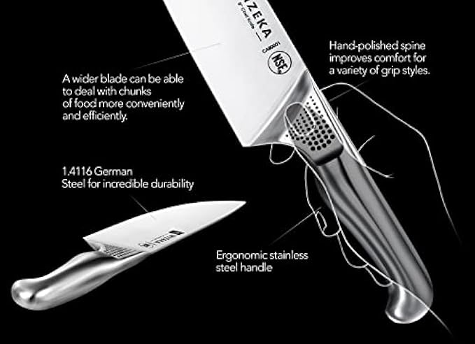• [Upgraded Technology] We’ve made quite a few upgrades to the knife to improve its strength and sharpness. Each knife is tarnished, stain, corrosion, and odor-resistant thanks to its one-piece design. All kitchen knives in this series are NSF certified.