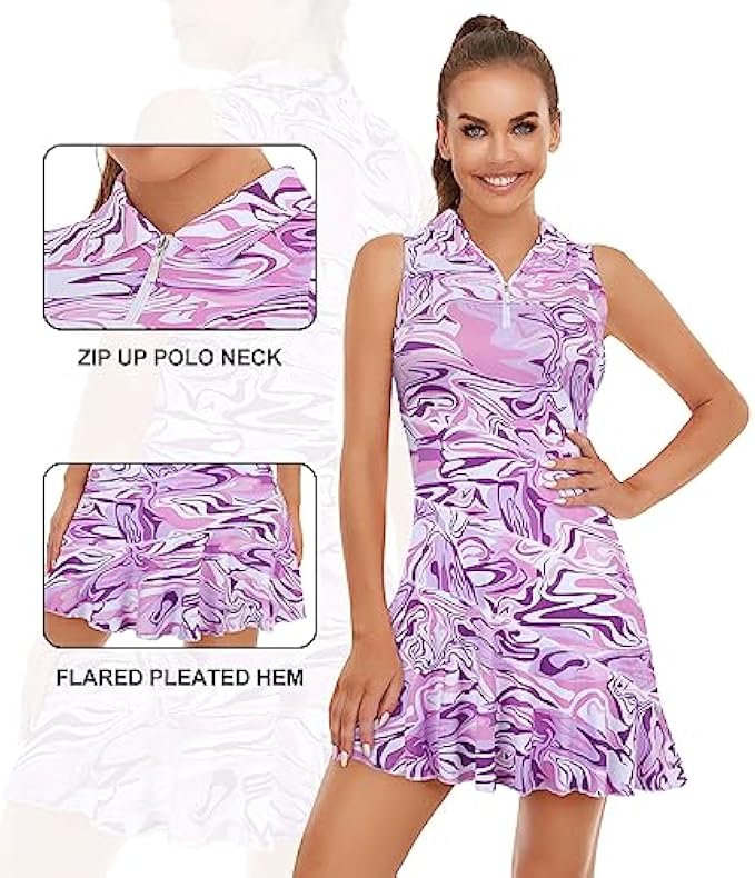 <li class="a-spacing-mini"><span class="a-list-item"> 95% Polyester, 5%Spandex. 4 way stretch, moisture wicking, breathable, lightweight, smooth and comfy, let you fully enjoy movements. </span></li> <li class="a-spacing-mini"><span class="a-list-item"> Imported </span></li> <li class="a-spacing-mini"><span class="a-list-item"> Zipper closure </span></li> <li class="a-spacing-mini"><span class="a-list-item"> 【Functional Inner Shorts】Detached shorts with two side pockets are enough to hold your phone while exercising, and convenient to keep tennis ball. </span></li> <li class="a-spacing-mini"><span class="a-list-item"> 【Quarter Zipper】Elegant polo collar design combined with classic v-neck quarter zipper, for a sporty and stylish look. </span></li> <li class="a-spacing-mini"><span class="a-list-item"> 【Exquisite Design】Sleeveless armholes curve smoothly and fit under the armpits. The three-line design of this athletic dress makes it more attractive. </span></li> <li class="a-spacing-mini"><span class="a-list-item"> 【Slim Fitted】 Classic Slim fitted cut better show your body curves, to show off femininity during exercise activities. </span></li> <li class="a-spacing-mini"><span class="a-list-item"> 【Occasions】Versatile workout dress is perfect for golf, tennis, badminton, running, hiking, shopping, dog walking, traveling and causal wear. </span></li>
