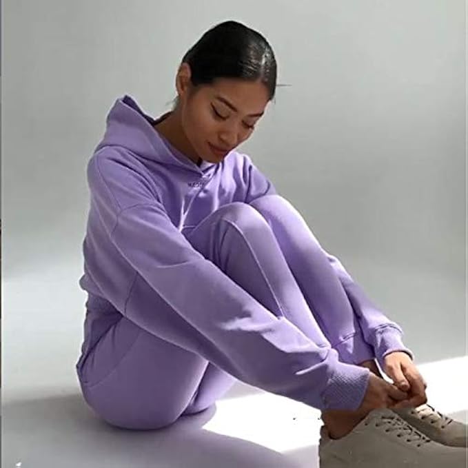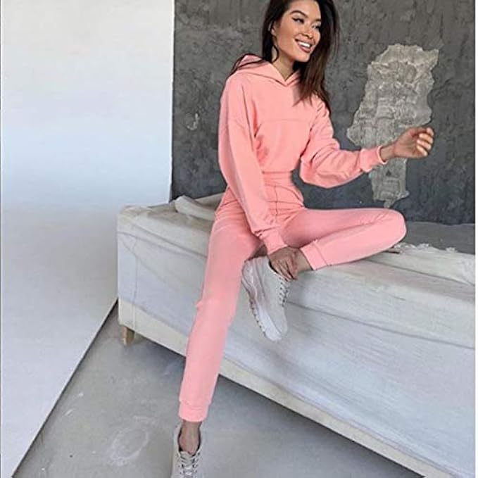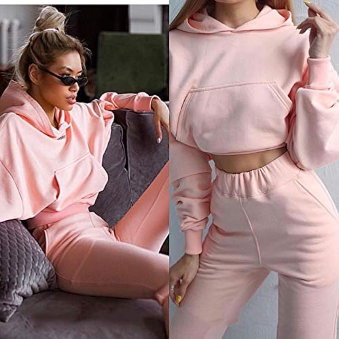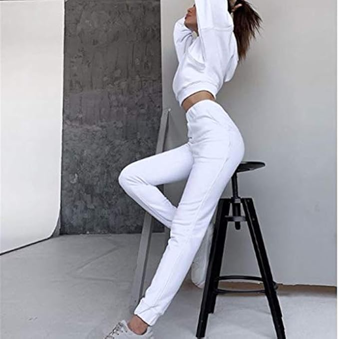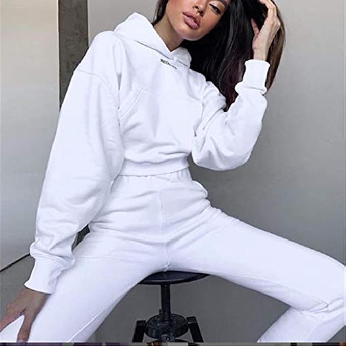 UXZDX 2pcs Long Sleeve Crop Top Hoodies Women Two Piece Outfits Stacked Pants Fashion Clothing Set Tracksuit (Color : B, Size : Medium)