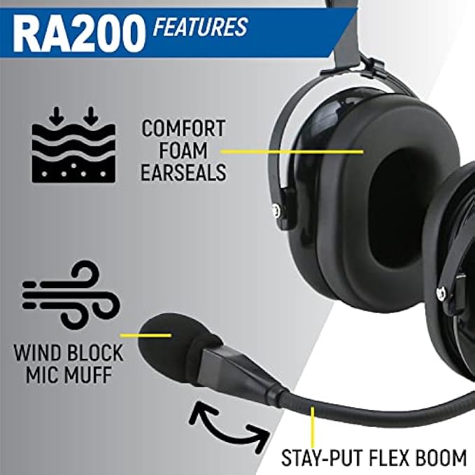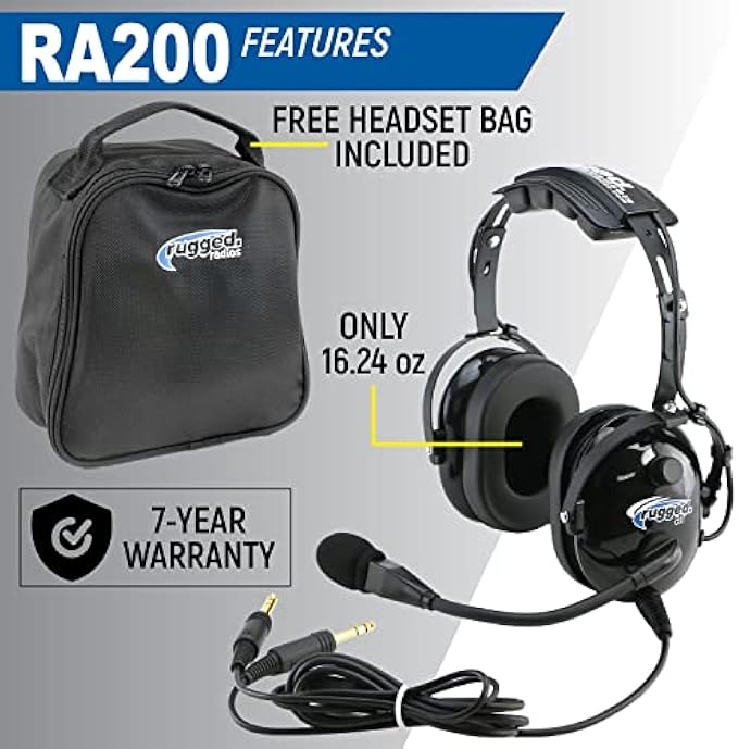 Rugged Air RA200 General Aviation Headset for Student Pilots – Features Noise Reduction Adjustable Headband Full Flex Mic Boom and Headset Bag