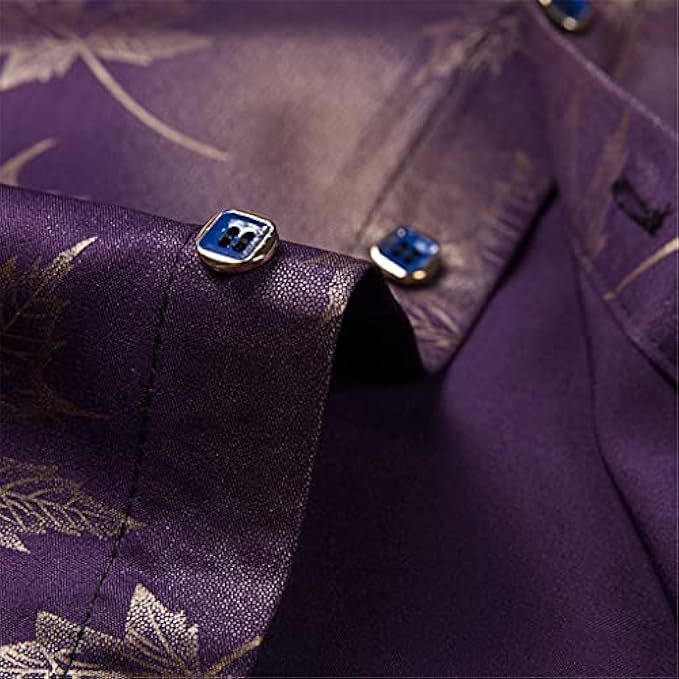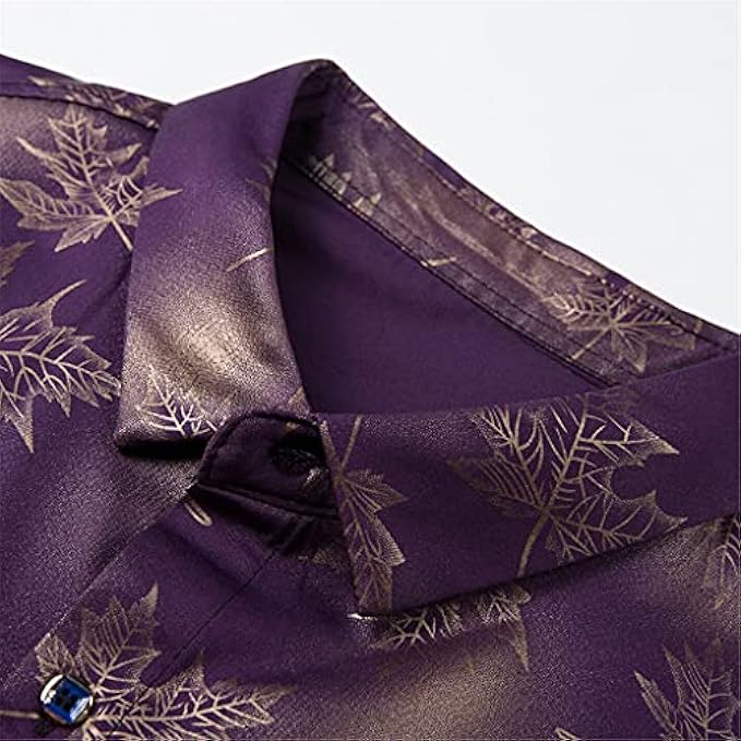 PDGJG Long Sleeve Maple Leaf Designer Shirts Men Slim Fit Vintage Fashions Men's Shirt Man Dress Clothing (Color : Purple, Size : 2XL)
