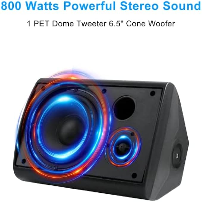 800 WATT POWER: The high powered 2-way full range indoor outdoor speakers wired waterproof has a maximum power output of 800 watt peak power / 200 watt RMS at 6 ohms so you can play your favorite tracks as loud as you want and with style